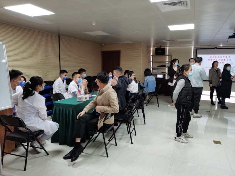 在活动现场专家们面对面为员工提供医疗问诊,耐心对一些日常的健康问题进行解答,护理团队耐心地为员工们开展中医外治:耳穴压豆、龙火罐等诊疗服务,并针对白领上班族的高发病、体质状况提供了科学合理的健康指导和建议。深受颈椎病困扰的员工小张在接受康复科苏晗医生的针灸治疗后酸痛立马得到缓解,不禁感叹中医的神奇功效,即刻添加了苏医生的联络方式,表示日后将继续中医治疗。