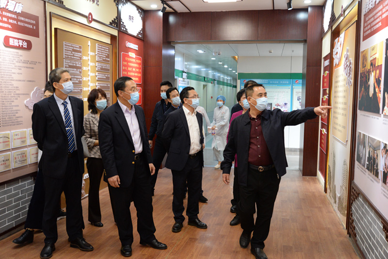 当天,在附属医院领导的陪同下,于福龙一行先后来到院史馆、治未病中心、胸心血管外科进行实地参观调研。随后到医院B座23楼进行座谈,座谈会由韦思尊主持。