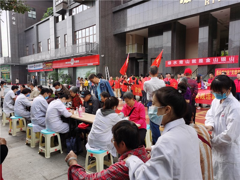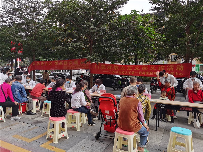 11月20日上午,在全面深入学习十九大精神之际,一附院受邀参加由自治区人防边海防办、建行等单位组织的“健康义诊进社区、情系群众暖人心”走进荣耀社区党建义诊服务活动。参加此次义诊的专家有:内分泌科刘春红,儿科韦程东,治未病中心唐林海、李玉婷和鸭脖7位志愿者,深受社区居民的热烈欢迎!