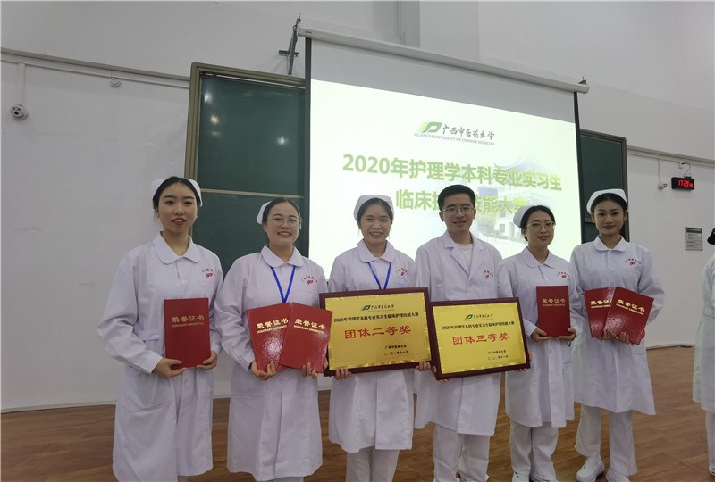 此次斩获佳绩离不开赛前带教老师的悉心指导和护生的刻苦训练,更充分体现了广中医实习护生团队扎实过硬的技能和临危不乱的应战底气。赛中比拼提升了实习护生创新能力、实践能力及团队协作能力,为学生树立坚实的专业思想和全面发展搭建了学习交流平台和奠定坚实的基础。