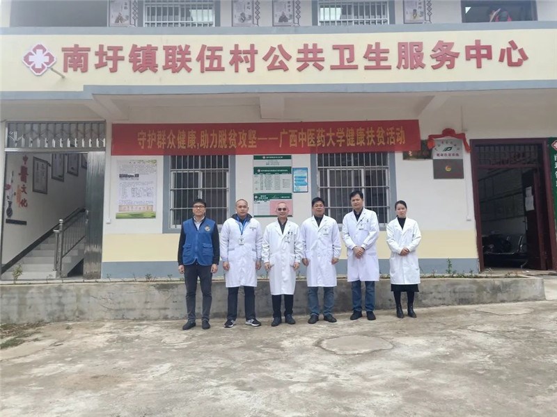 一附院第十二批“轮值村医”党员专家团队与一附院驻联伍村“第一书记”兰庆同、联伍村村医合影