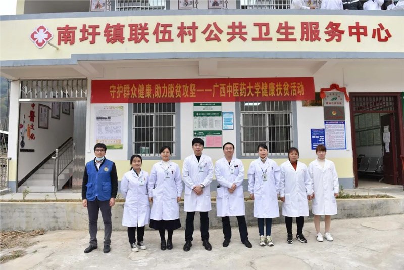 一附院第十七批“轮值村医”党员专家团队与一附院驻联伍村“第一书记”兰庆同、联伍村村医合影