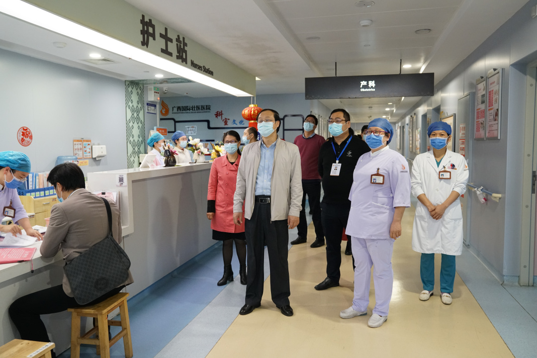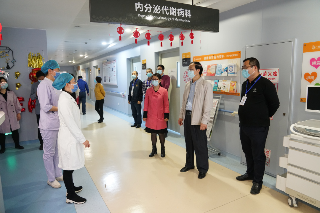 2月18日,正值春节假后上班第一天。YABO鸭脖副校长、附属国际壮医医院(广西国际壮医医院)代理院长戴铭,医院党委书记秦祖杰,纪委书记罗艺徽,副院长黄国东、李铭、唐盛军等领导和职能部门负责人分组走访46个临床医技药科室,慰问工作在一线的医护人员,向他们送上最诚挚的问候和新春的祝福,并进行现场办公。