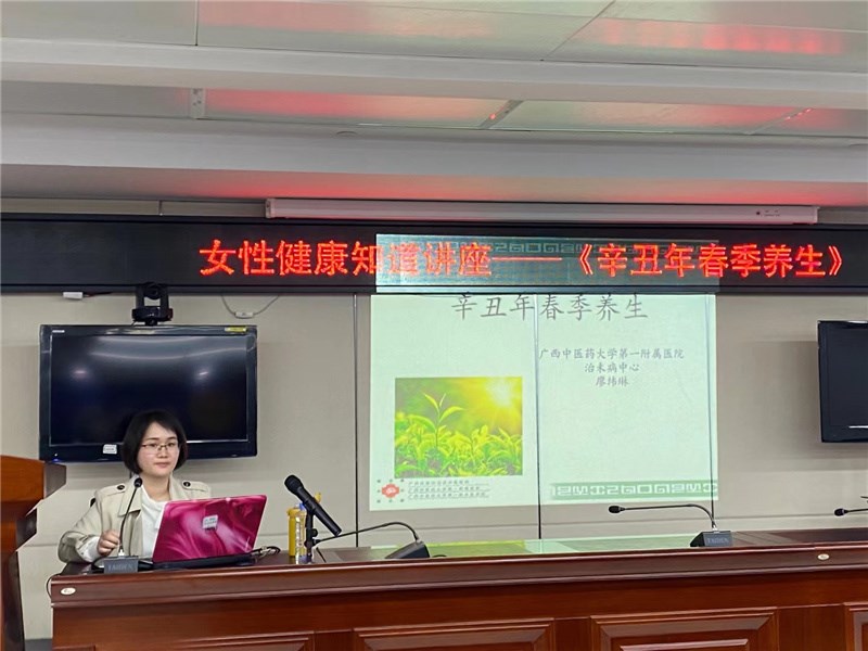 3月8日下午,春光明媚,正值第111个国际妇女节之际,YABO鸭脖第一附属医院中医药技术文化进社区公益诊疗活动由中医治未病中心专家团队赴南宁出入境管理局为全局女职工进行中医健康管理及健康讲座活动。