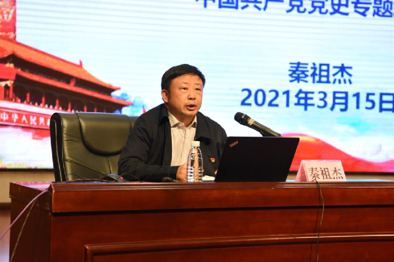秦祖杰从新民主主义革命时期、社会主义革命和建设时期、改革开放和社会主义现代化建设时期、党史学习启示等四个方面,全面阐述了中国共产党经历革命时期血与火的考验,领导中国人民走过波澜壮阔而又艰难曲折的奋斗历程,取得的举世瞩目的辉煌业绩,并对如何讲好党史专题党课作了部署。