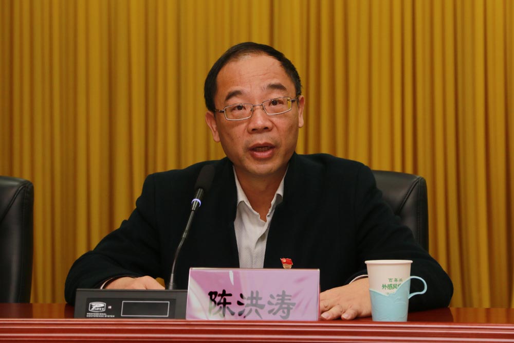 制药厂党委副书记、副厂长陈洪涛在会上作工作报告