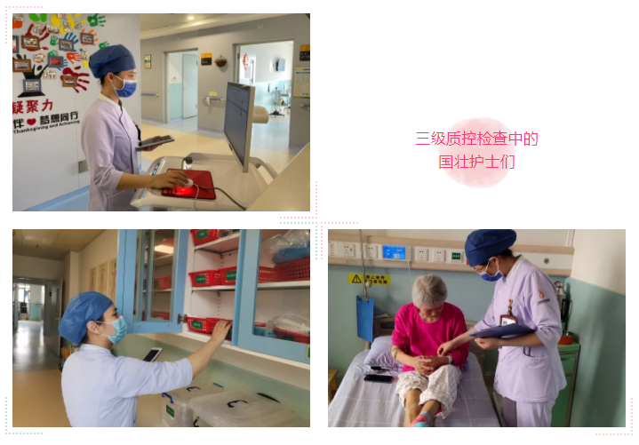 据了解,“三级质控体系前移”,是一种选拔临床一线护理骨干参与院级质控检查的质控管理模式。“走动式管理”则是指一种由护理部主任、科护士长、院级护理质控员组成三级护理管理质控小组通过定期或不定期查房、日常督查等形式深入一线开展督查监管工作的督查模式。