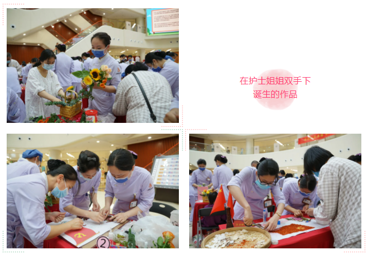 比赛中,32支队伍比创意、秀才智,平日里一双双服务患者的“天使之手”,瞬间变为“艺术家之手”,创作出了一幅幅主题鲜明、色彩缤纷的画作,引得评委组专家频频点头称赞,来院患者也不禁驻足观看。