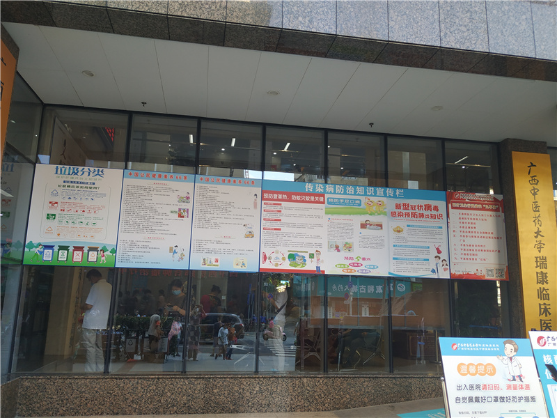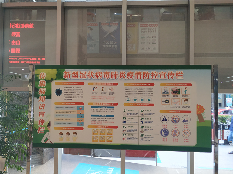将党史学习教育融入日常、抓在经常、贯穿始终,做到学史明理、学史增信、学史崇德、学史力行。 医院利用多种形式宣传普及公共卫生知识,积极倡导健康文明的生活方式。在医院显著位置设置科普知识展板进行公共卫生知识宣传,在门诊楼大厅电子屏循环播放公益广告及健康教育宣传,在医院外部增设用于展示公益广告和健康教育内容的宣传栏,并在医院多处设置可移动式宣传栏及报刊架,报刊架上放置有健康宣教手册、医院院报等,均可供群众免费取阅。宣传栏每月定期补充、更换,内容涵盖行业规范、社会主义核心价值观、学习典型先进模范事迹、“文明健康 有你有我”“爱国卫生,你我同行”公益广告、健康卫生知识宣教、疫情防控、文明餐桌等多方面内容,全方位、多渠道营造了浓厚健康宣教氛围。
