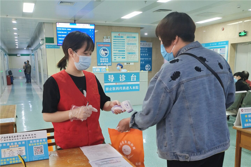 医院还扎实推进学雷锋志愿服务,为患者就医提供便利。志愿者服务队和医务社工分布在医院各区域,在医院门诊大楼内,每天均有不同的志愿者来此进行志愿服务。如何网上预约、如何填写流行病学筛查表、如何办理就诊卡……统一着装的志愿者们耐心细致地解答,围绕就医引导、自助机引导、健康讲座、义诊等内容开展志愿服务。自2017年建立以来,医院志愿服务队在广西志愿服务网注册的正式成员已有3246名,累计总服务时长1.8万小时,服务患者80万余人次。