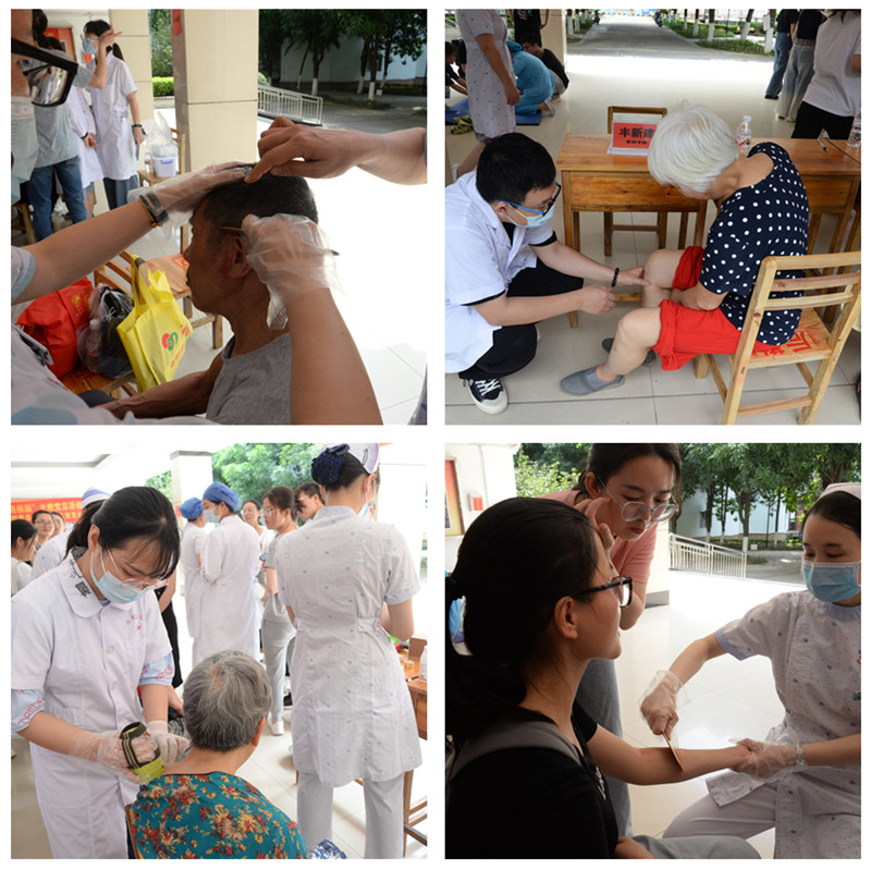 在活动现场,附属瑞康医院治未病中心吕婵护士长作了题为《关爱眼睛健康,呵护心灵之窗》的健康科普知识讲座,分享眼睛保健知识。医护人员向群众免费发放健康宣传资料、为现场群众把脉问诊、免费测量血压血糖;对群众提出的常见病多发病的健康问题进行答疑解惑,帮助大家掌握用药、饮食、复健等问题;不少现场群众还体验了多样化中医特色治疗;急诊科专家现场培训应急必备常识、心肺复苏及海姆立克法等,不少群众在医务人员的细心指导下,亲身体验了心肺复苏操作全过程,活动获得现场师生一致好评。本次活动,共义诊600多人,发放科普宣传资料近千份。