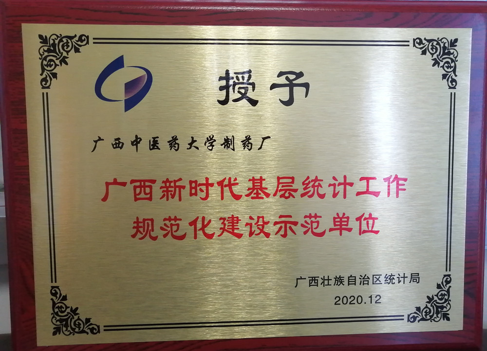 【喜讯】制药厂荣获“广西新时代基层统计工作规范化建设示范单位”