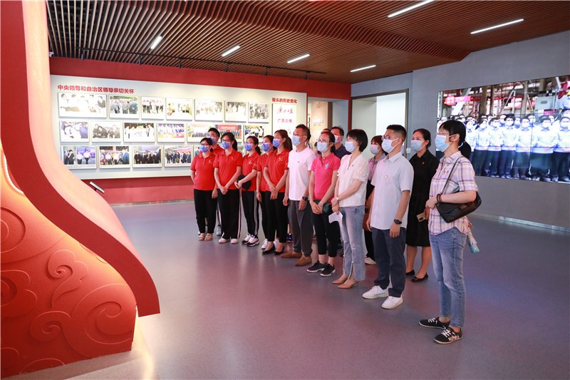 活动过程中,党员们在讲解员的带领下先后参观了报史馆12个展厅,展厅里的数百件新闻作品、历史影像和珍贵物品,浓缩了新中国成立以来广西70多年波澜壮阔的岁月,向大家展示了八桂大地在中国共产党的领导下从昔日的贫困落后逐步走向繁荣振兴的伟大历程。让党员们对广西革命史、建设史、发展史和改革史有了更全面、更形象的了解,增强了大家爱党、爱国、爱家乡、爱中医药事业的情怀。
