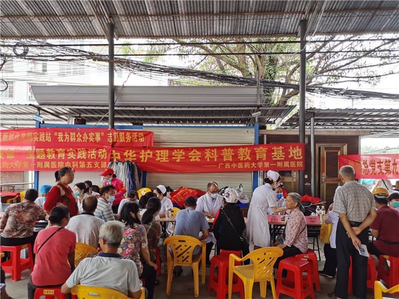 活动当天恰逢是社区菜市的“街天”,赶圩的居民早早就到活动现场排起了长队,一附院医护人员认真地为他们检查身体、测量血压,提供中医药问询、中医药药膳养生的小妙招,耐心地回答她们的健康咨询,发放中医药药膳养生宣传资料、中药包。当天服务群众约500余人,发放健康宣传资料约100余份、现场体验中医针灸疗法、推拿正骨手法约50余人次。