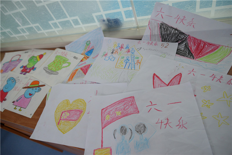 正值建党百年之际,一场“童心向党·礼赞百年”画画比赛率先拉开帷幕。孩子们拿起画笔画描摹党旗国旗,并描绘自己心中的六一儿童节的样子。病房里的小婷出生于去年六一儿童节,今年刚好是她1岁的生日,小婷妈妈听说搞活动,第一个积极报名,小婷也十分开心。还有一位小朋友小鸿,6岁的他诊断为室间隔缺损,为了治疗今年在病房度过了这个六一。在活动现场,他特别活跃,他说:“我画了好几幅画,我特别爱画画,护士阿姨你们看是不是画得很好啊?”孩子天真可爱地看着护士们问道。护士还没来得及回答,小鸿妈妈就答道:“特别好,小鸿画画最棒了,明天我们家小鸿就要做手术,也要一直棒棒的哦。”随后护士们也对小鸿的画作竖起了大拇指。看到这一幕,小鸿妈妈转头对护士说:“真的很感谢你们,让孩子过了一个不一样的六一,同时也很感谢国家、感谢党,有了先心病的救助金救助,减轻了我们家很大的经济负担”。五颜六色的画作,充满了孩子们的奇思妙想,也流露出孩子们对美好明天的向往。
