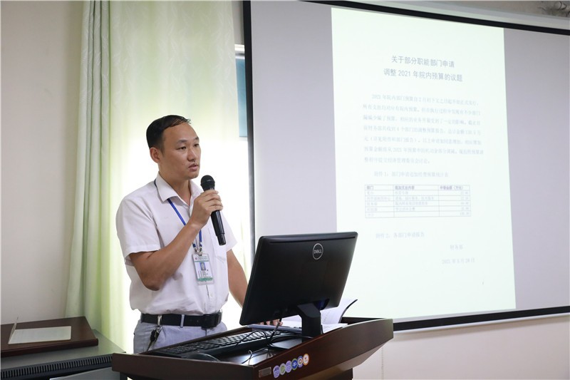 会上,苏泽凤对一附院2021年第一季度经济运营情况进行了汇报。一方面,从宏观上对东葛院区和仙葫院区进行收入、支出、门诊人次、出院人次等财务指标的对比;另一方面,从微观上着重对各科室平均病床周转次数、病床使用率等数据进行分析研判,同时,对加强一附院运营管理提出了几点建议。财务部主任吕幸丰向委员们提交了申请调整2021年院内预算的议题。