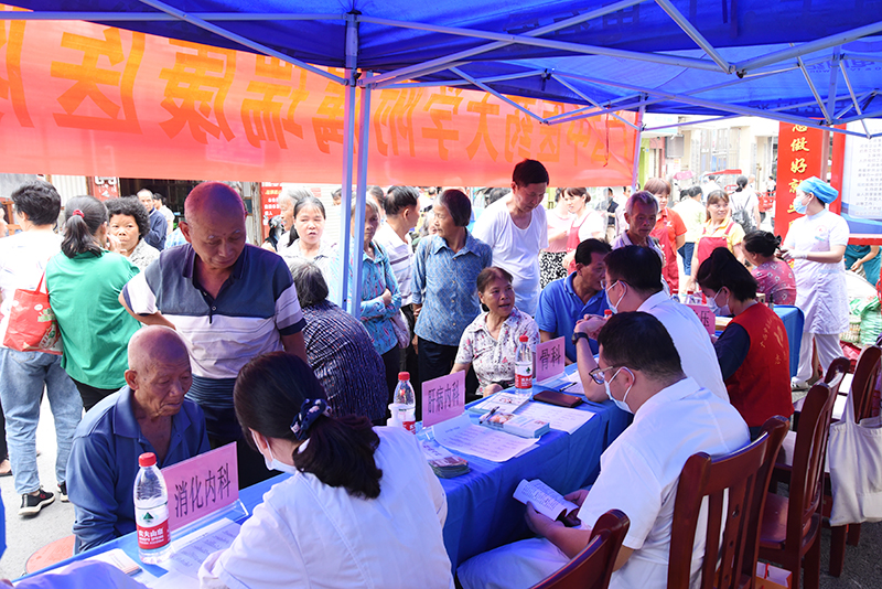 为扎实推进乡村振兴战略,将党史学习教育成果落实到实际工作当中,切实为人民群众办好事办实事,6月11日,附属瑞康医院积极发挥医疗卫生后盾单位的特色优势,党委委员、纪委书记黄建民带领肝病内科、消化内科、心血管内科、康复医学科、骨科、耳鼻喉头颈外科、妇科、视光中心、药物研发中心等科室医护团队来到隆安县都结乡开展健康义诊暨送医送药活动。
