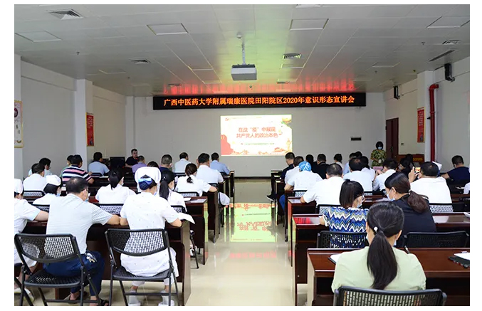 ▲医院党委书记高宏君到田阳院区宣讲意识形态