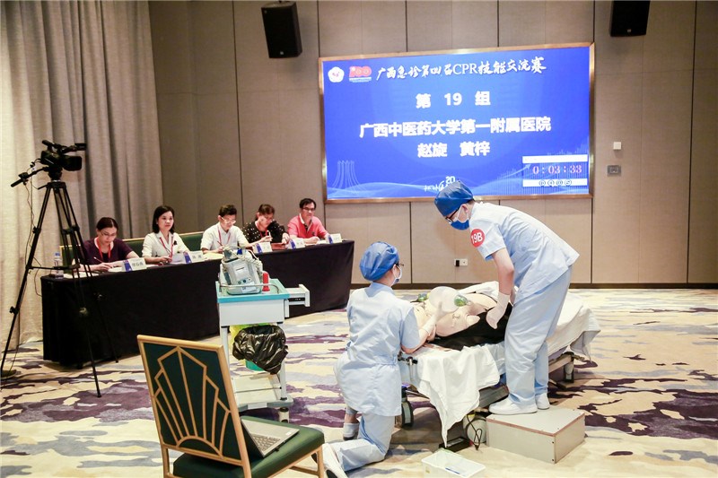 6月18日,由广西医学会主办、广西医学会急诊医学分会承办的广西急诊第四届 CPR 技能交流赛在南宁市成功举办。此次大赛目的是促进全区各医院间急救技术的交流,展现广西急诊年轻医护人员的风姿风采,提高专业急救技能。交流赛共有来自广西51家医院的137名急救医护精英参赛,一附院仙葫院区急诊科选派住院医师赵旋和护士黄梓两名队员参赛并荣获三等奖的好成绩。