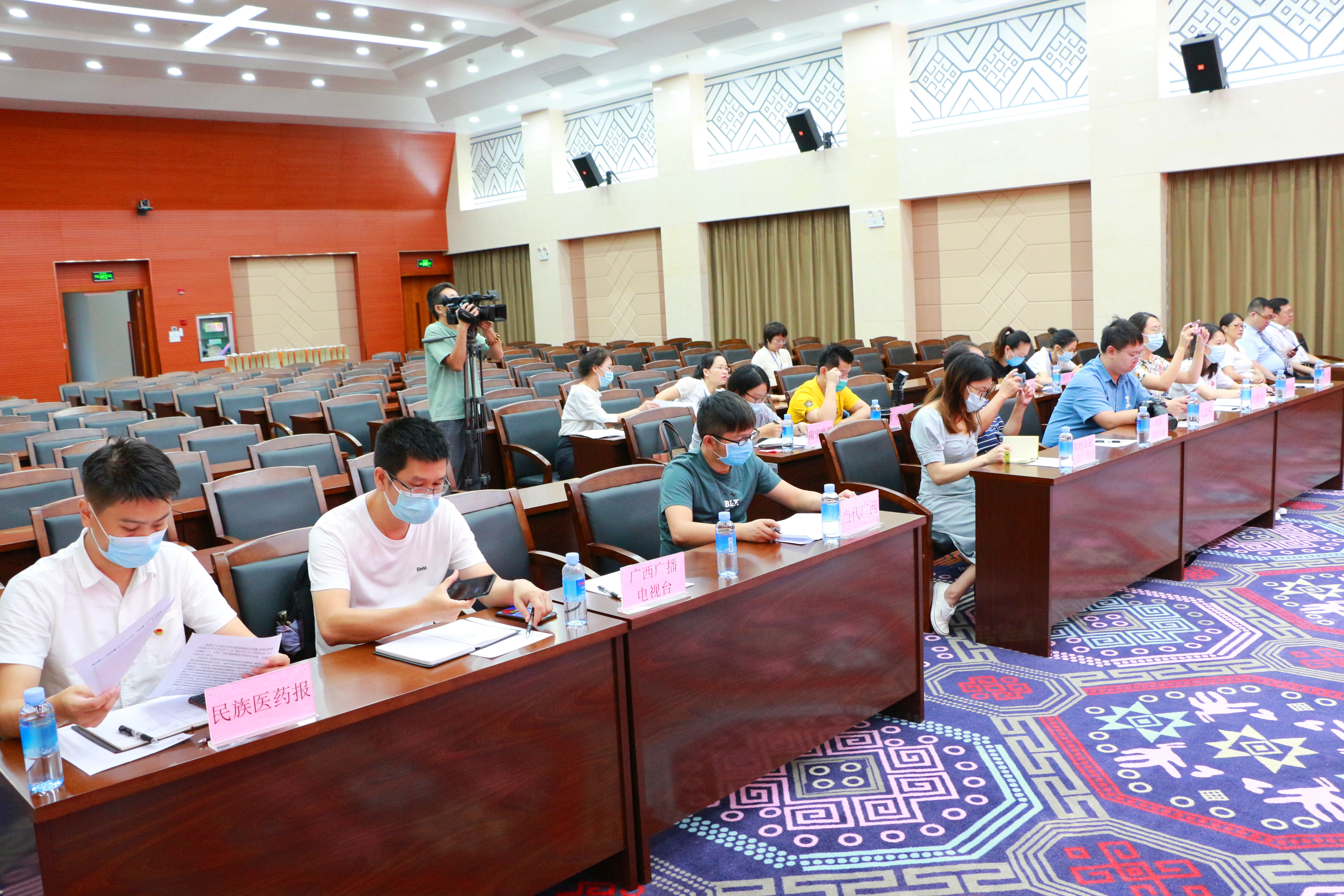 6月29日上午,在举行三级甲等民族医医院揭牌仪式前,广西国际壮医医院召开媒体见面会,人民网、中国中医药报、中新社、香港商报、广西日报、广西电视台、南宁电视台等14家中央、区、市媒体受邀参加。广西国际壮医医院党委书记秦祖杰、院长岳桂华出席,介绍医院当前发展情况与下一步发展计划,并现场答记者问。罗艺徽、李铭、唐盛军等院领导前排就坐。