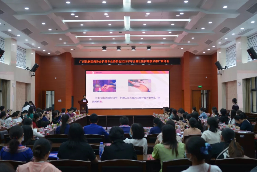 7月3日下午,广西民族医药协会护理专业委员会(下简称“专委会”)年会暨壮医护理技术推广研讨会在广西国际壮医医院顺利举办。广西壮族自治区中医药管理局医政处处长潘霜,广西民族医药协会执行会长、广西国际壮医医院党委书记秦祖杰出席并致辞,来自专委会和各壮医联盟单位的近300名专家、学者参会。医院副院长黄国东主持会议。