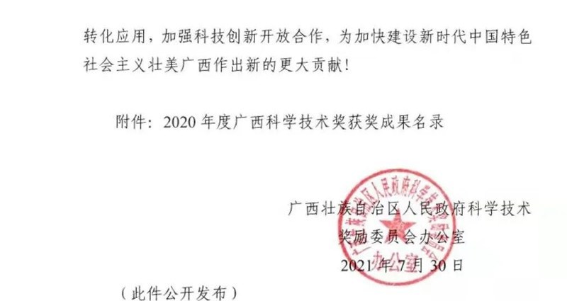 2020年度广西科学技术奖获奖成果名录(截图)