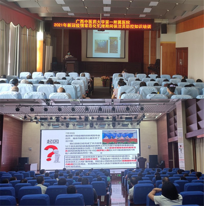 知识促进认知,认知提升执行。面对全国新冠肺炎疫情进展的新态势,一附院感染管理科积极行动,分批分次开展全院全员各层级培训,近期完成东葛、仙葫两院区保洁、护工、保安等第三方公司派驻工勤人员新冠肺炎疫情相关知识再培训,进一步强化提高工勤人员对疫情防控工作职责及个人防护的意识及能力。