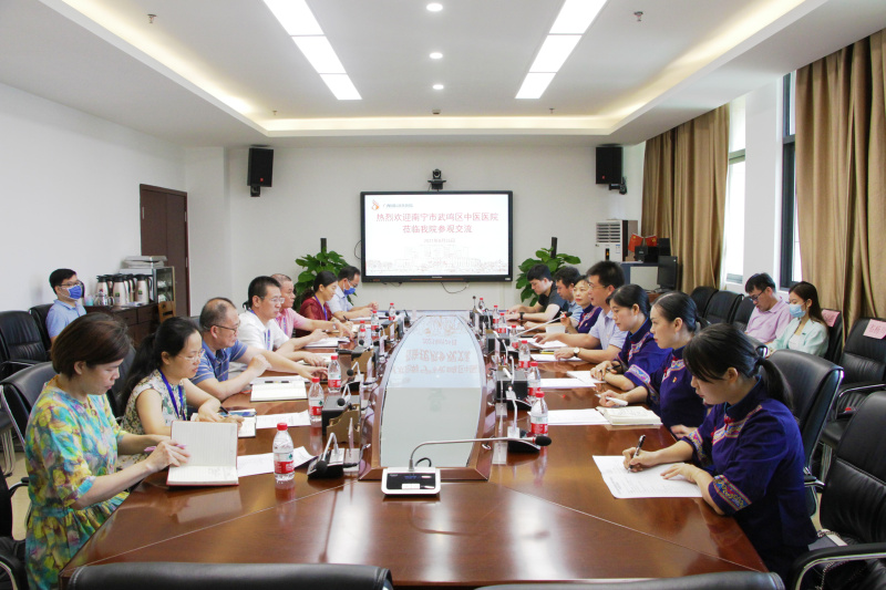 8月26日上午,南宁市武鸣区中医医院党委书记、院长杨红海,党委副书记、副院长梁梅桂一行到广西国际壮医医院参观学习,医院院长岳桂华,副院长黄国东、李继清陪同,相关职能科室负责人参加。