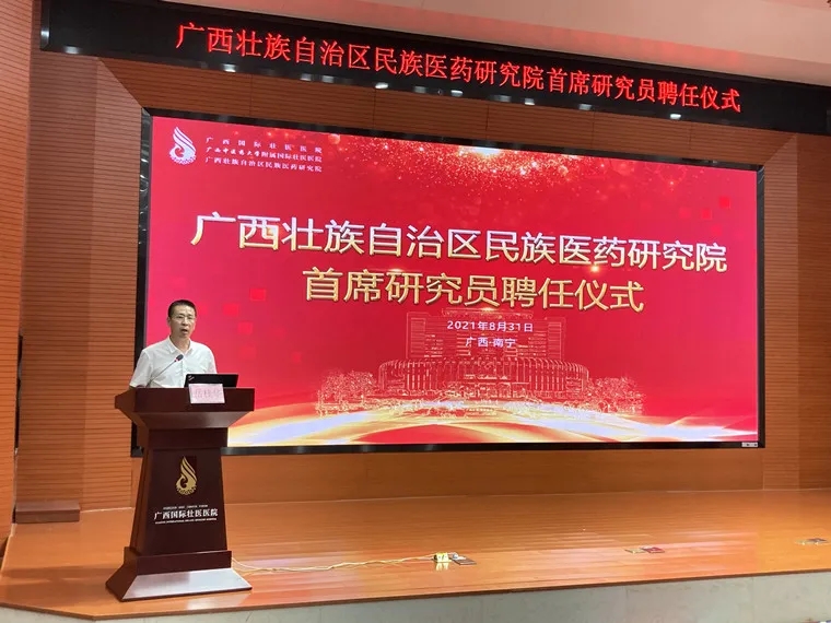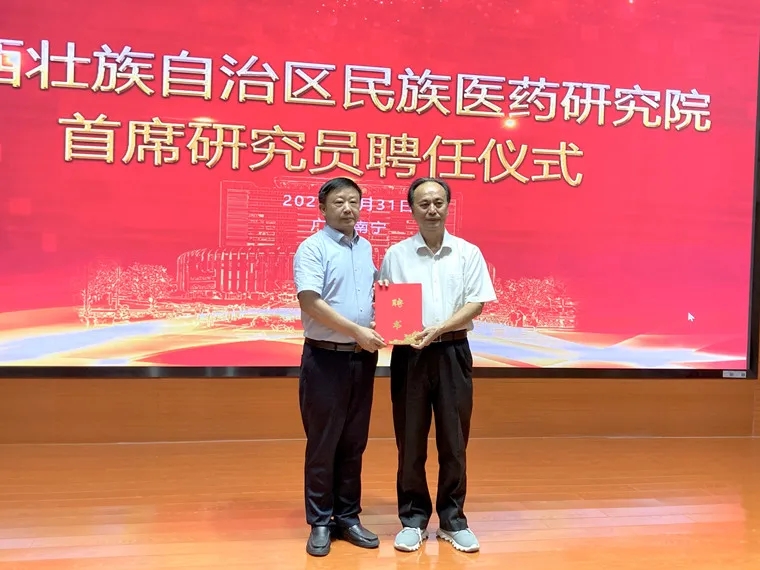 8月31日,广西国际壮医医院举行聘任仪式,中药学二级教授、广西终身教授、广西中医药科学实验中心首席专家邓家刚获聘广西壮族自治区民族医药研究院首席研究员,将在学科建设、民族医药人才培养、科研能力提升、民族医药制剂、国际交流与合作等方面发挥指导作用。