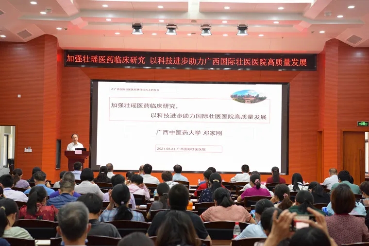 邓家刚教授以《加强壮瑶医药临床研究,以科技进步助力国际壮医医院高质量发展》为题授课