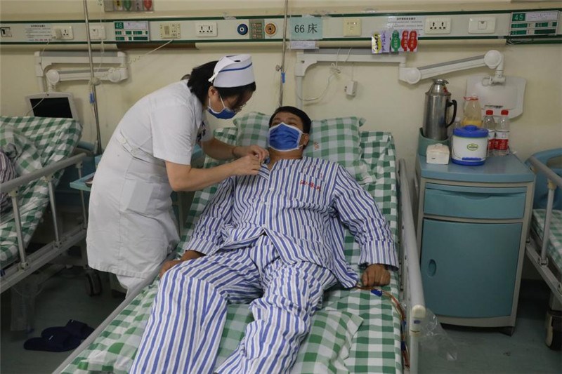 泌尿外科护长李瑛在给韦建才精心护理