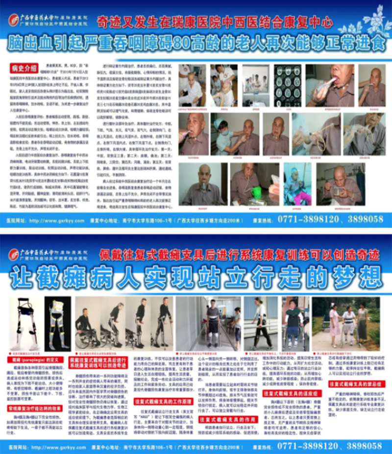 附属瑞康医院康复医学科(中医经典病房、脑病针康病区)(原神经内科三区)成立于2008年,科室在成立之初,在医院“坚持中西医并重,坚持中西医两条腿走路,平衡协调快速发展”的办院方向的指导下,以国际先进理念为基础,结合中国文化和社会背景,采用中西结合的技术手段,建立了中西合璧的新型康复医疗服务模式,发展出一套极具特色的中西医结合康复治疗体系。在医院的支持下及科室团队的不懈努力下,医院现成为广西中医特色康复服务示范医院。科室成为广西临床重点专科、广西中医药管理局重点学科、广西康复医学会吞咽障碍康复专委会及远程教育专委会主任委员单位。