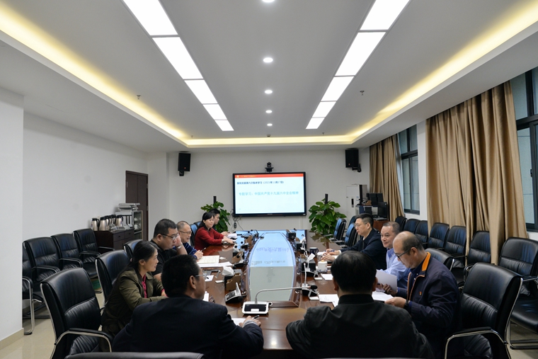 附属国际壮医医院召开党委(扩大)会议集中学习党的十九届六中全会精神 来源:附属国际壮医医院 作者:宣传科 日期:2021-11-17 点击数: 次 分享到: 11月17日上午,附属国际壮医医院召开党委(扩大)会议,集中学习党的十九届六中全会精神。医院领导班子成员全体参会,院党委书记秦祖杰主持会议。 会上,秦祖杰带领大家认真学习了《中国共产党第十九届中央委员会第六次全体会议公报》,就医院下一步全面推进学习贯彻六中全会精神做出全面部署。 院党委委员吴光、罗艺徽、黄国东、李铭分别结合医院实际谈了学习体会。 秦祖杰领学 会议现场 打印正文 关闭本页