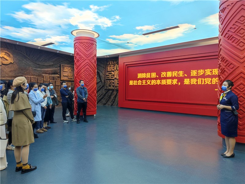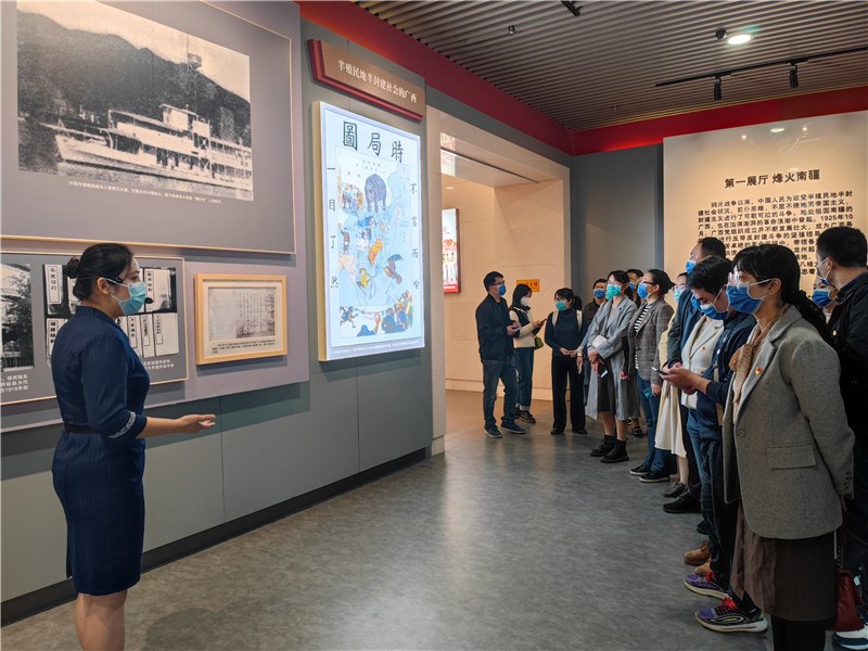 团员团干们在讲解员的带领下,首先参观了“百年奋进 百年辉煌——中国共产党广西历史展览”,该展厅以坚守初心、百年追梦作为主线,再现中国共产党团结带领广西各族人民不懈奋斗的非凡历程和取得的辉煌成就。随后又组织参观了广西脱贫攻坚成就展,该展厅共有“攻坚克难 成就辉煌”和“榜样力量 激励前行”等5个篇章,展现了广西打赢脱贫攻坚战的光辉历程、历史性成就和宝贵经验。