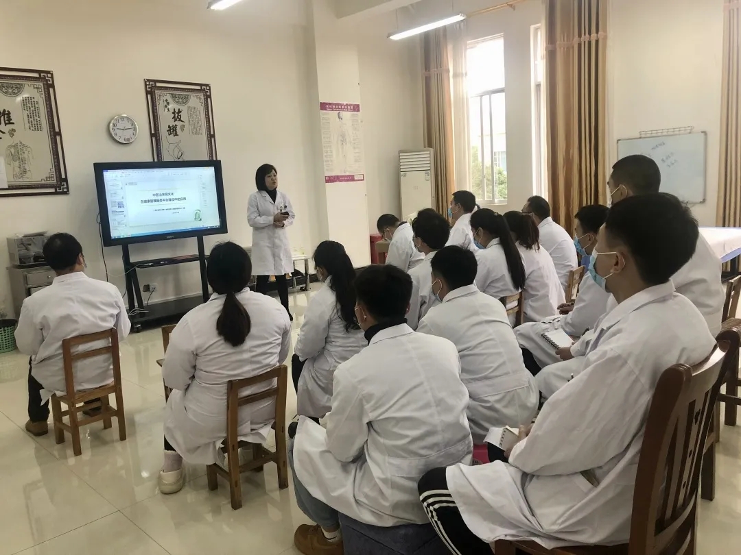 中医治未病健康管理中心主任刘倩就《中医治未病健康管理服务技术》进行了专题授课,阐述了中医治未病文化在健康管理中的重要意义,详细分析了中医治未病健康管理服务技术开展实施要领,并与科室主任交流专科建设经验,具有较强的指导意义,为下一步基层医院建立和完善中西并重、防治并举的治未病专科提供了参考借鉴。