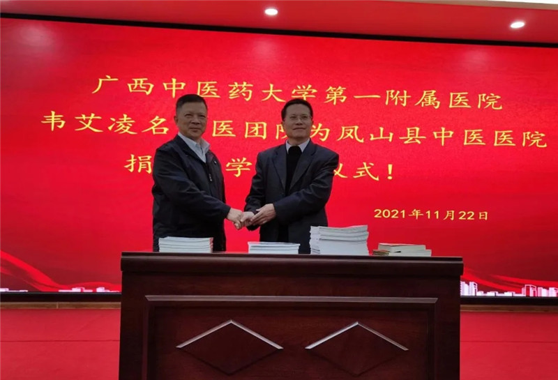 韦艾凌名中医团队为凤山县中医医院捐赠医学书籍仪式
