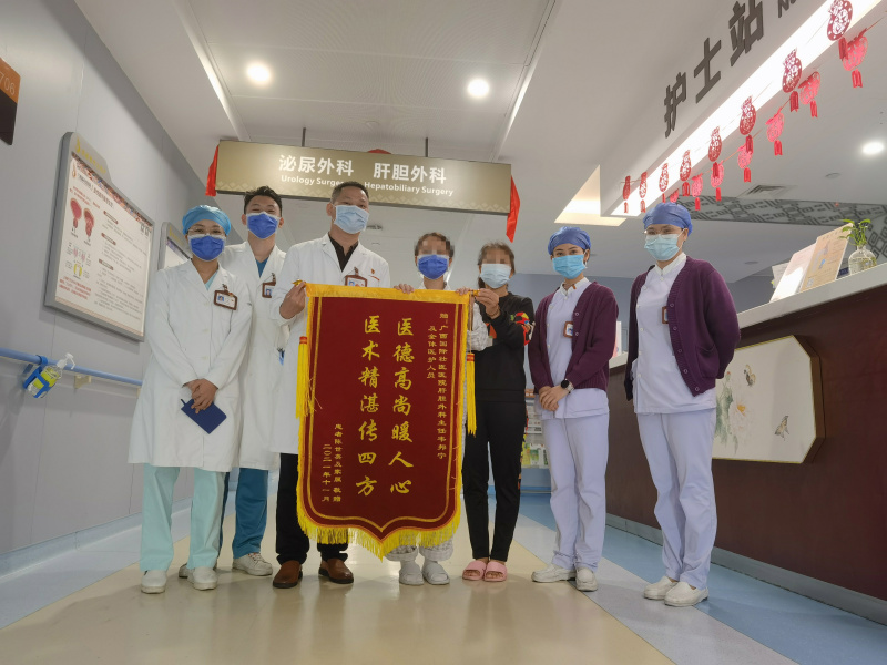 “你们不仅治好了我的病,更是挽救我的家庭和往后的人生,真的很感谢科室医护人员的悉心照顾!”11月30日,陈女士出院当天,向肝胆外科赠送锦旗致谢。