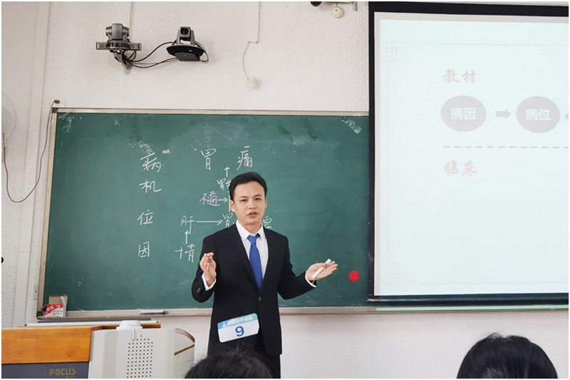 中医内科学教研室舒发明老师在比赛现场作教学演示