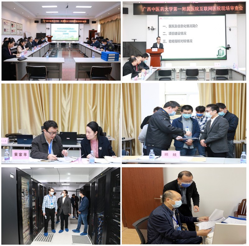专家组认真听取了工作汇报,并通过现场查验机房设备、观看系统演示、查阅审查材料、质询评议等方式,按照《广西互联网医院验收评估要点》,对医疗机构设置、第三方合作、人员资质、监管对接、信息安全、设备及部署、网络要求、音视频设备、服务流程、电子病历十个方面进行了全方面深入、细致的检查。
