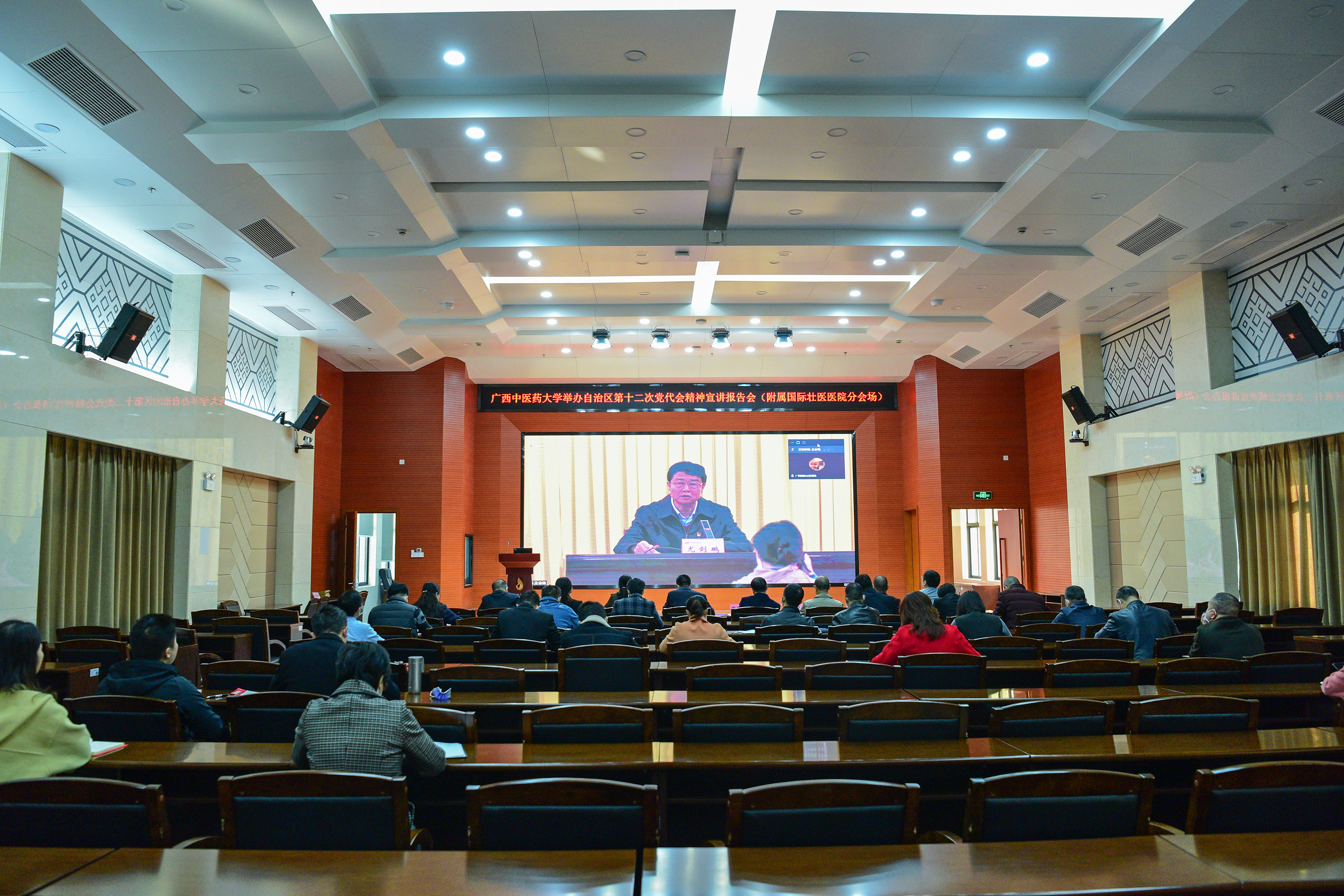 12月22日上午,YABO鸭脖举办自治区第十二次党代会精神宣讲报告会,深入学习贯彻自治区第十二次党代会精神,切实把广大党员干部师生的思想和行动统一到自治区党委决策部署上来,推动党代会走深走实、入脑入心。报告会以视频会议形式召开,附属国际壮医医院作为分会场之一,医院领导班子成员,各党总支、党支部书记参加。