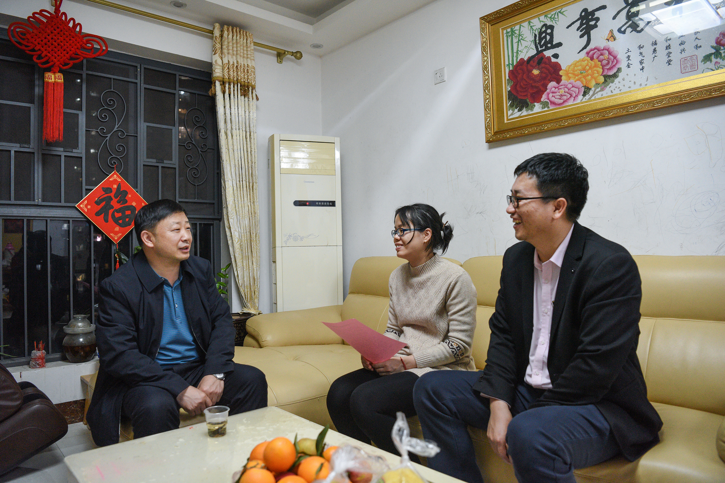 党委书记秦祖杰(左一)在郑光珊家中家访
