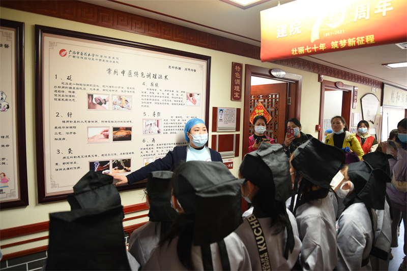 为促进中医中药文化的传承与发展,引导中、小学生认识中医药、喜欢中医药、传播中医药。1月19日下午,南宁市华强路小学20余名学生和家长在附属瑞康医院社工部的组织下在医院中医药博物馆开展了第六期“中医药文化”科普主题活动。
