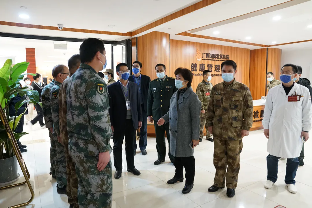 2月17日,南宁市良庆区区委书记陆广平到我院现场了解城区征兵体检工作开展情况。广西国际壮医医院院长岳桂华陪同。