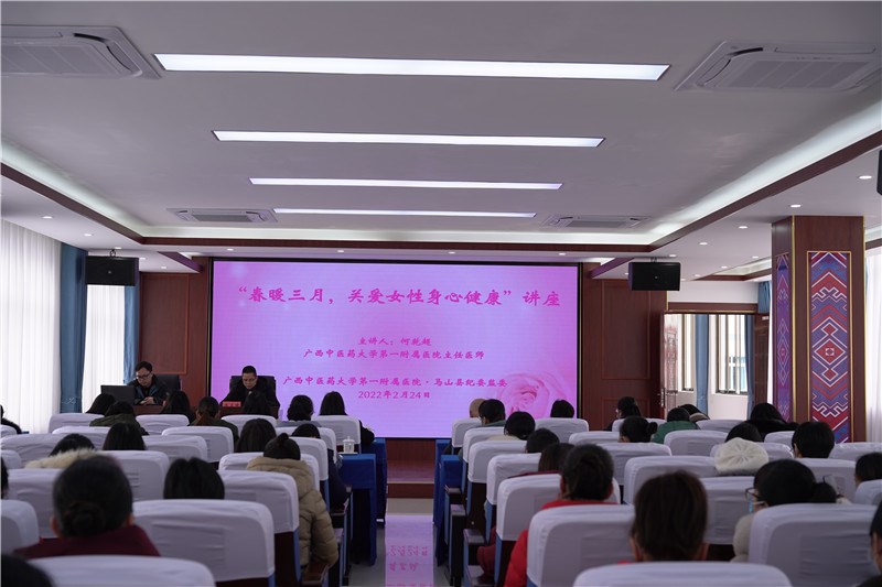 健康体检中心于2月24日走进中共马山县纪律检查委员会,为该县纪委监委女职工授课。何乾超主任医师围绕女性六个时期的生理特点、常见和高发疾病、饮食习惯要点、心理保健等内容,为现场近百名听众展开讲解。90分钟的授课,无一人中途离席,课后还安排了互动答疑环节,现场气氛十分热烈。