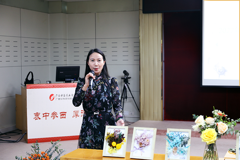 随后,专业的花艺师向大家介绍了鲜花常识,从鲜花的选择,到保养与摆放,从颜色搭配、造型层次,到花语的美好寓意进行了细致讲解,让现场的女职工们对插花艺术产生了极高的兴趣。