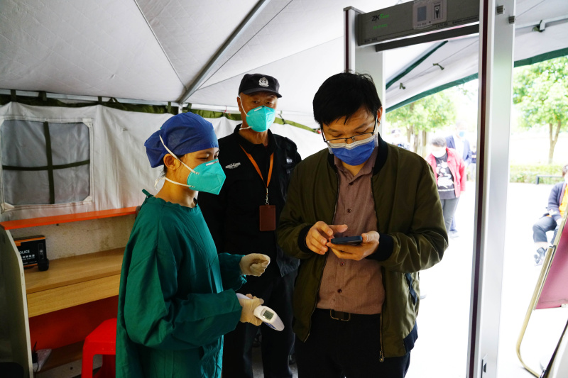 预检分诊岗对疫区返邕患者进行测温、检查