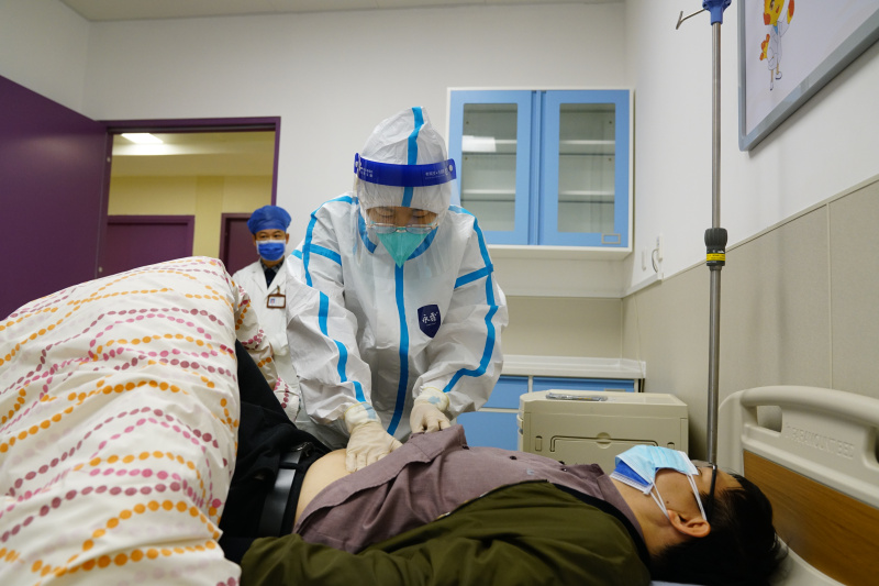 接诊医师对患者进行详细流调、核酸采样及问诊,并上报院内疫情防控指挥部办公室,由专用通道将患者带至隔离病房。针对患者腹痛加剧情况,立即启动应急预案进行处置,并邀请胃结直肠外科、脾胃肝病科等科室医生前来会诊。在抢救、会诊的同时,对患者经过地方进行严格消杀。