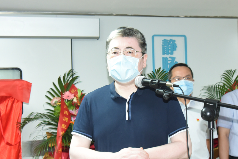 唐友明在仪式上致辞,他表示,静脉用药调配中心是当今大型综合医院必不可少的科室之一,对规范临床静脉用药的集中调配,具有非常重要的意义。他对静脉用药调配中心的建设和发展提出几点建议:一是要进一步发挥药师专业特长,不断钻研,将学科做大做强;二是要加强药品质量控制,关注用药安全,不断改善药学服务质量;三是要强化人才队伍建设,提升核心竞争力。