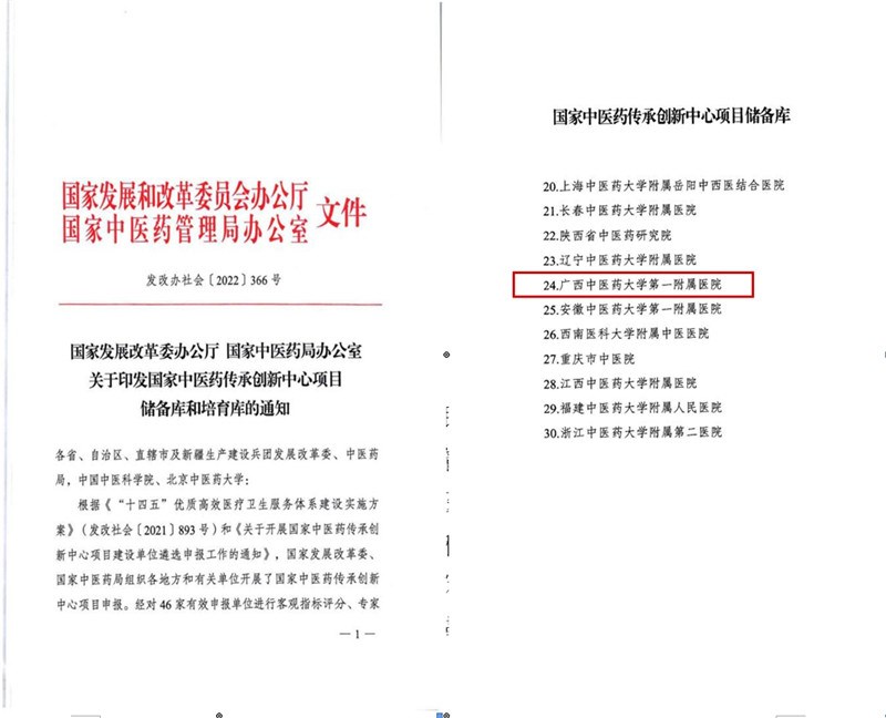 近日,国家发展和改革委员会办公厅、国家中医药管理局办公室联合下发《关于印发国家中医药传承创新中心项目储备库和培育库的通知》,一附院成功入选国家中医药传承创新中心项目储备库。