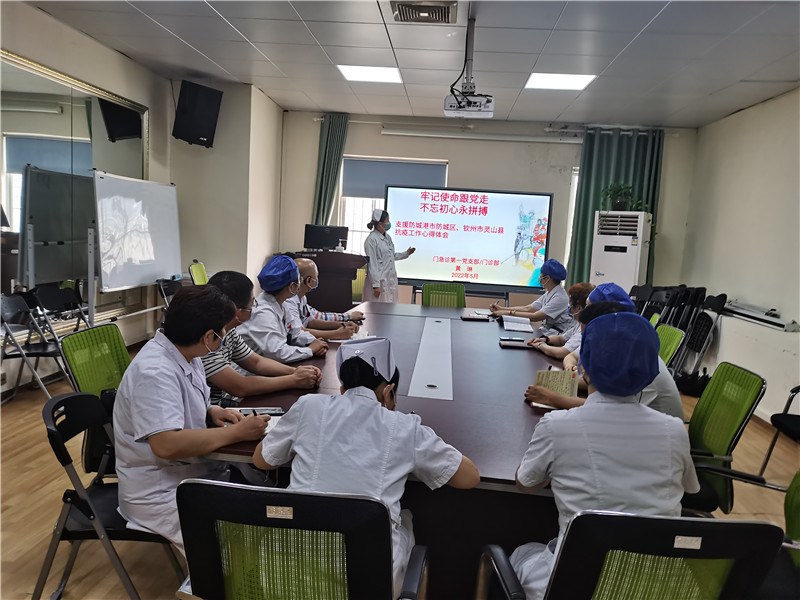 支部党员黄琳同志,通过参加防城港、灵山县支援抗疫亲身体会,围绕“榜样就是力量”的感人事迹与大家分享。大家听后感触很深,大家纷纷表示:抗议前线的医护人员、志愿者和各级干部群众,他们白加黑、5+2无怨无悔深入村屯百姓家采集核酸标本、组织环卫消杀和物资供应,默默地辛勤付出,有时顾不上喝一口水,舍小家顾大家,忙于抗疫一线,他们才是真正的抗疫英雄。我们要向抗疫榜样学习,时刻牢记 “疫情就是命令,防控就是责任”的圣神职责,在自己工作岗位上尽职尽责,主动为病患群众着想,努力干好本职工作,为一附院的发展贡献力量。